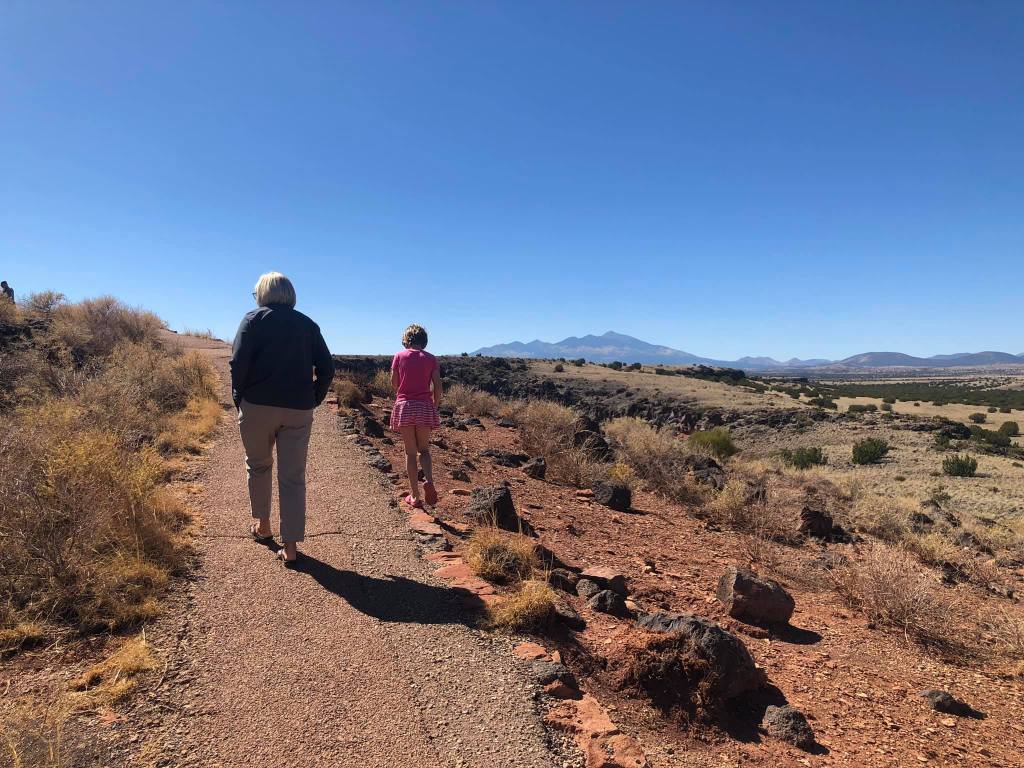 One of the best parts of visiting Wupatki is the opportunity to hike the surrounding trails and take in the vast, open landscapes. As we strolled along, we could see the San Francisco Peaks in the distance, towering over the horizon. The trail is family-friendly and easy to navigate, making it ideal for younger kids.