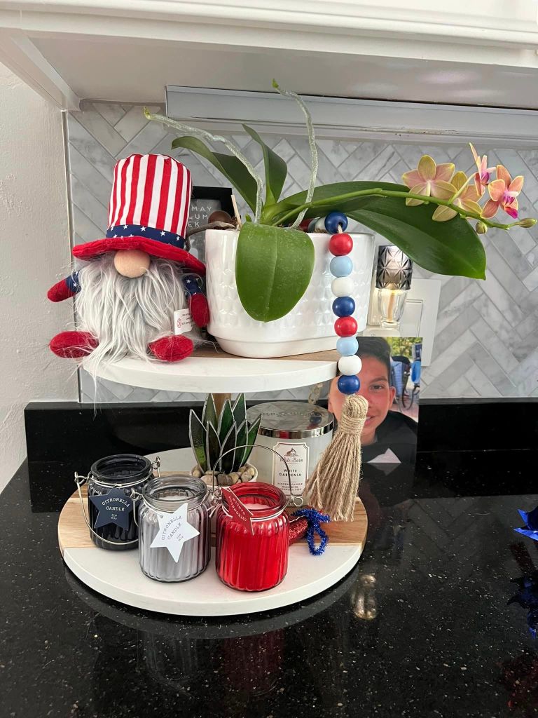 Hey everyone! Katy here, and I’m excited to share our latest holiday decor adventure—this time, for 4th of July 2023! I challenged myself to stick to a budget, so I scoured the Target Dollar Spot and the Dollar Store for all our decorations. And let me tell you, you don’t have to break the bank to make your home shine with patriotic spirit! From festive signs and table settings to DIY centerpieces and sparkly accents, we’ve got it all covered. Check out these snapshots and get inspired to celebrate in style without spending a fortune. Who knew budget-friendly could look this good?💫