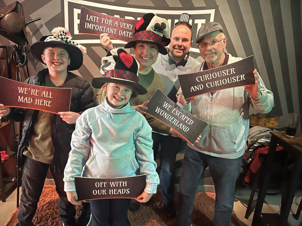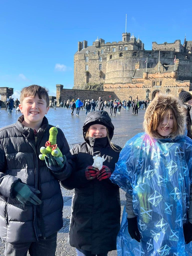 We woke up on the train and took taxis to our hotel, the Holiday Inn Express. It was clean, well-located, and the staff were wonderful. The weather forecast humorously indicated “Blowin’ a Hoolie,” which was accurate as it rained all day. We visited Edinburgh Castle in the morning, but the persistent rain led us to change our plans. We ended up at Alice in Puzzleland at Escape Edinburgh, a fantastic last-minute addition that provided great fun and shelter from the rain.